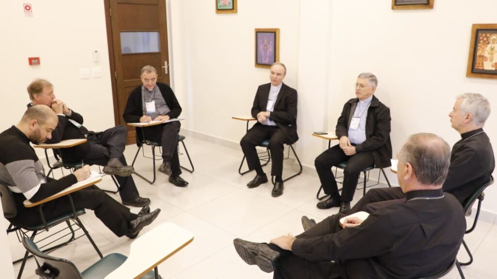 Recordando a Assembleia Sinodal realizada no Vaticano em outubro de 2023, Dom Pedro Carlos Cipollini indicou aos bispos paulistas que o primeiro passo do processo é a invocação do Espírito Santo. Após, se realiza a leitura do texto de apoio e da pergunta orientativa. Cada participante da dinâmica, em dois minutos, expõe o próprio entendimento acerca do questionamento destacado. “O silêncio também deve ser contemplado”, disse o orientador. “A conversa é espaço para a oração sobre aquilo que foi falado. Em uma segunda rodada de fala, as exposições devem estar apoiadas nas partilhas anteriores (favorecendo a escuta mútua e do Espírito Santo)”, concluiu o bispo antes da divisão dos grupos.