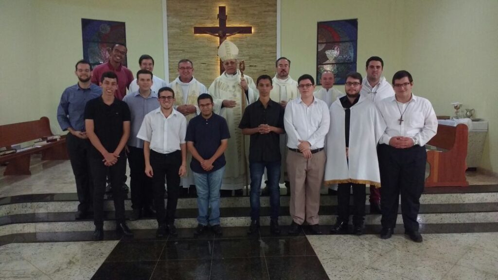 A equipe formativa do referido Seminário, constituída pelo Reitor, Padre Antônio de Marcos, e, pelo Vice-reitor, Padre Marcelo Vicentin, estava reunida com os onze Seminaristas, para celebrar a comunhão Diocesana com nosso Bispo, nesta semana especial para nossa fé.