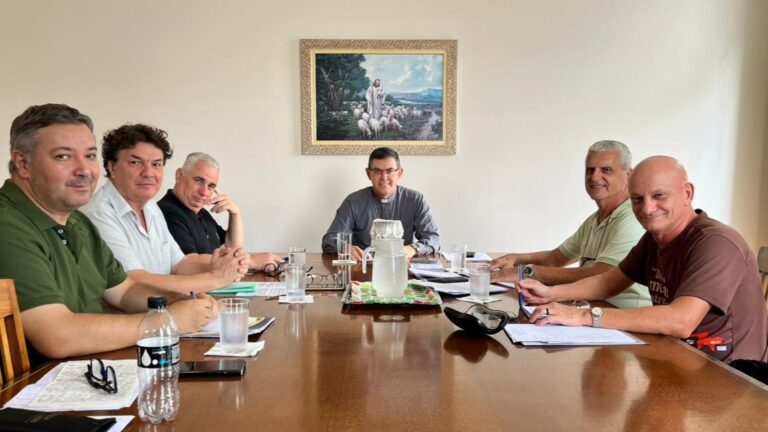 A reunião mensal do Conselho Episcopal aconteceu na tarde desta quinta-feira (5), na cúria diocesana. Dom Luiz, juntamente com os vigários e o coordenador de pastoral, tratou de assuntos administrativos e pastorais da diocese, além de orientações e encaminhamentos de assuntos dos vicariatos.