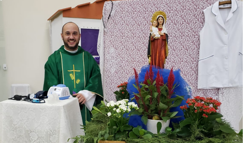 Durante a celebração, Padre Juliano, administrador paroquial, agradeceu a todos os profissionais de saúde presentes e deu a bênção nos instrumentos de trabalho.