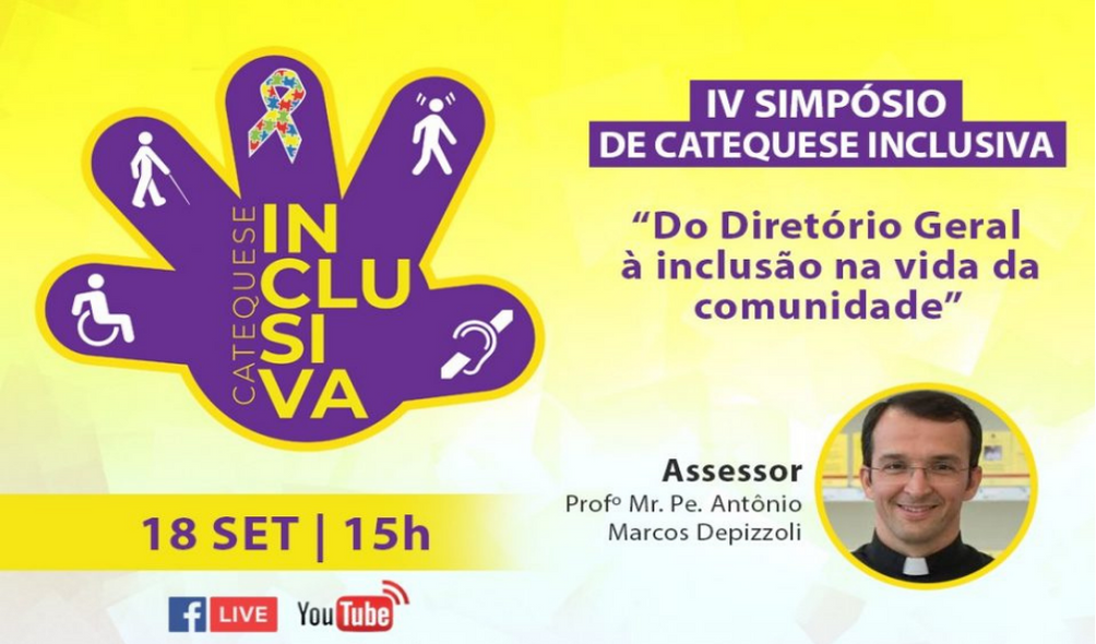 Com o tema “Do Diretório Geral à inclusão na vida da comunidade”, será realizado no dia 18 de setembro, às 15h, o IV Simpósio de Catequese Inclusiva.