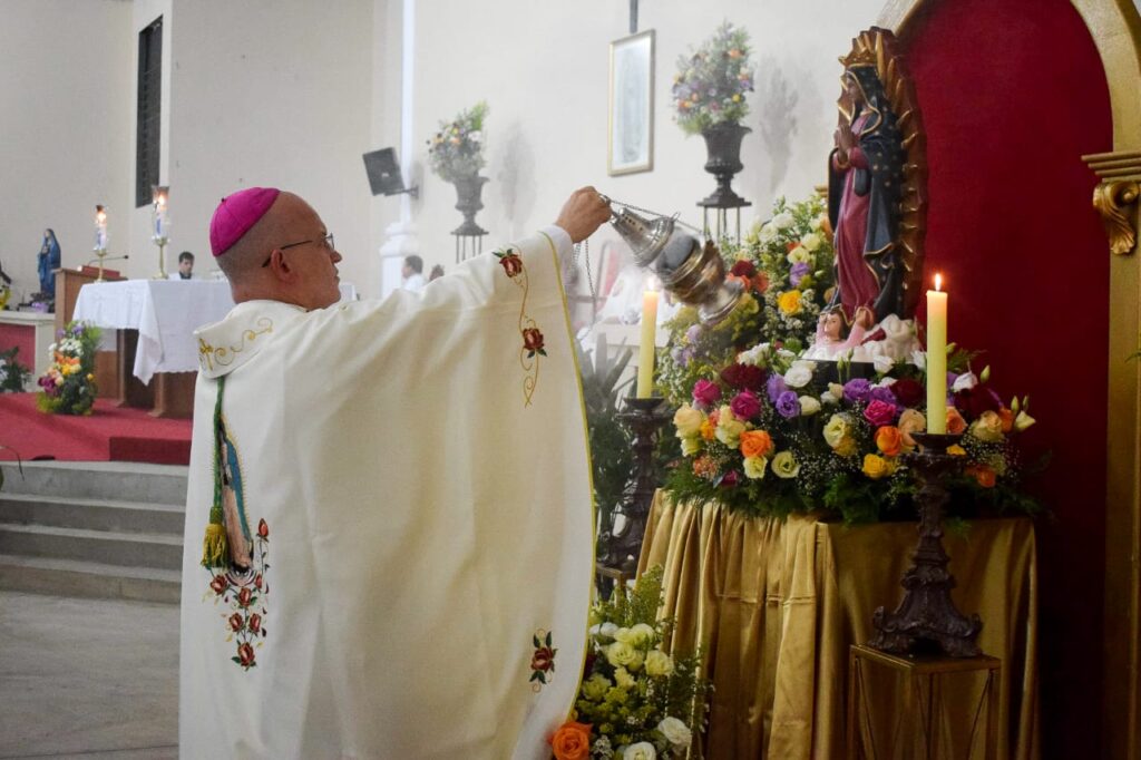 Em sua homilia, Dom Eduardo traçava um paralelo entre o manto do índio São Juan Diego e a nossa vida que é também tecida por Deus. Falando da devoção à Virgem de Guadalupe, recordou-nos que Maria se apresentou como a “Morenita”, cujas feições recordavam o semblante do povo indígena.
