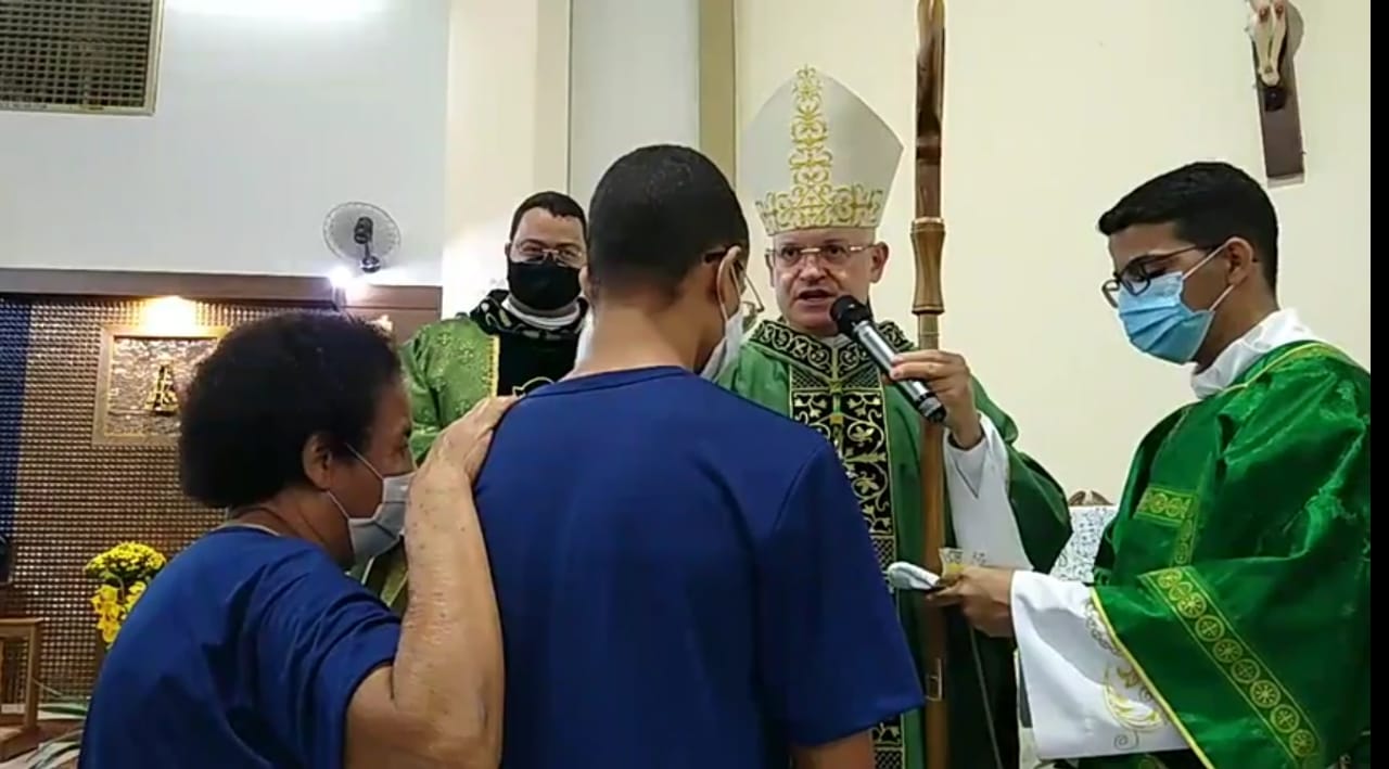 Momento de grande alegria para os crismandos, suas famílias, catequistas e ao Padre Leandro da Silva Pimentel, que concelebrou a Santa Missa, juntamente com o Diác. Ueriques, acolhendo nosso Administrador.
