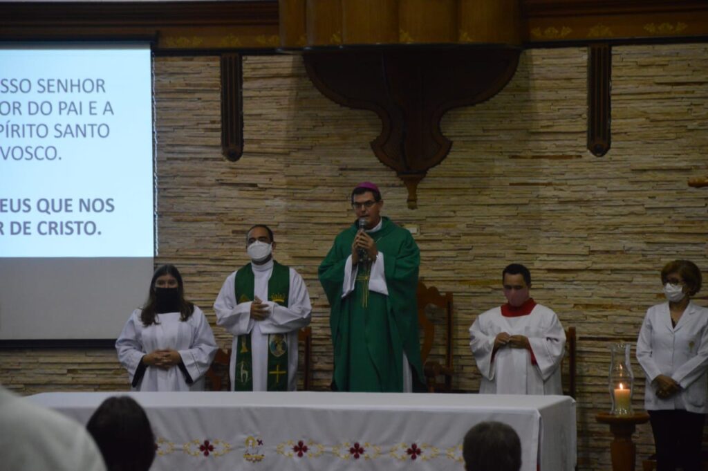 Na última quarta-feira (09), Dom Luiz Carlos visitou a Paróquia de São Sebastião e presidiu a Celebração da Eucaristia. Na sua homilia, Dom Luiz refletiu sobre a importância da unidade e da Comunhão que devemos ter todos para desempenharmos bem a Missão que Deus nos confia, cada um fazendo o seu papel, tendo como princípio fundamental da nossa fé, a Pessoa de Jesus Cristo. Essa experiência com o Cristo deve nos levar sempre ao encontro do amor ao próximo, principalmente aos dos que mais sofrem.
