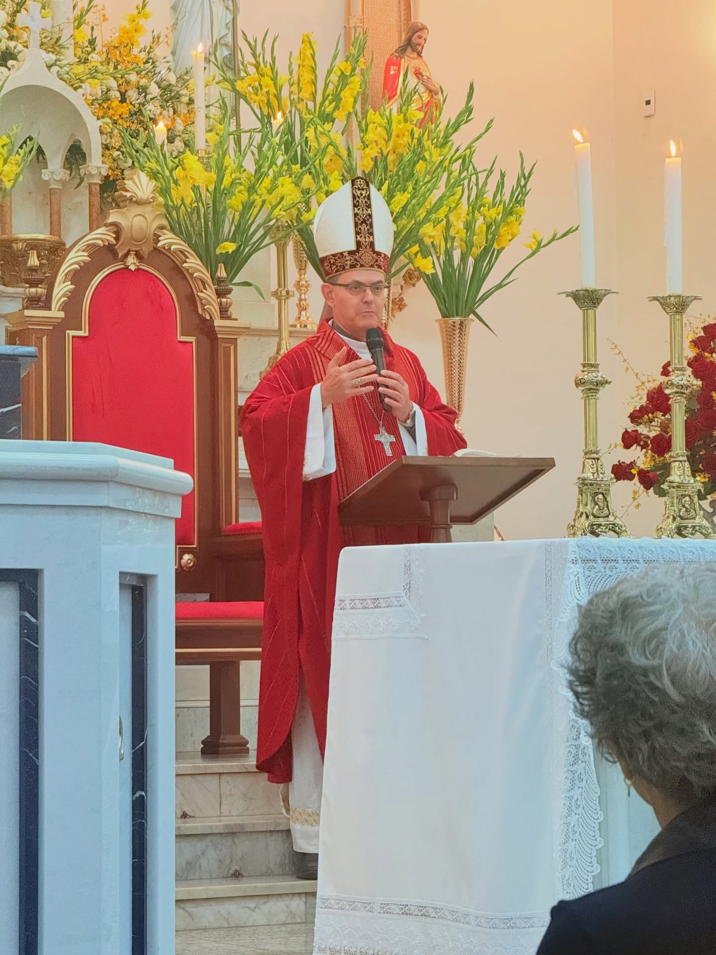 A missa contou com a presença do pároco, padre Luciano, e dos padres Nilton e Marcos, da diocese de Jaú. Paroquianos, devotos e autoridades estiveram presentes.