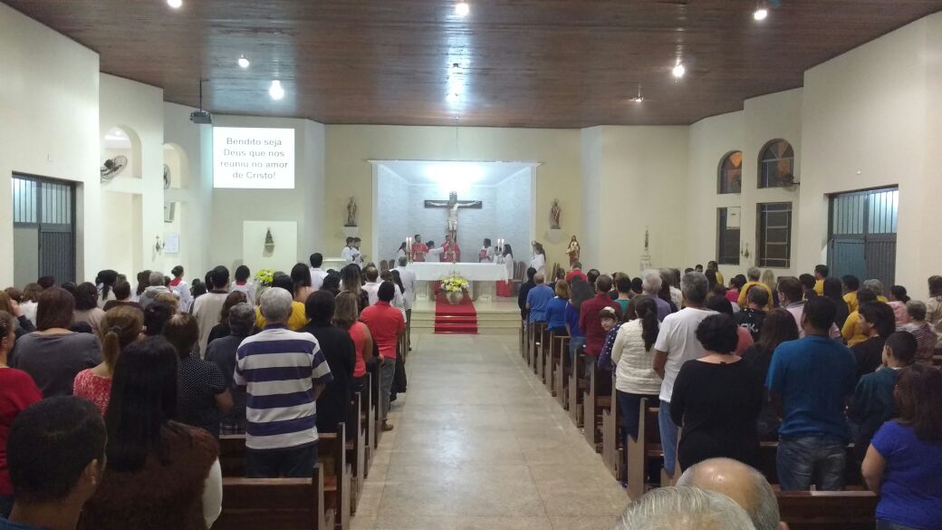 Dom Paulo presidiu ao lado do pároco Padre Ramom Ramos, após o termino da celebração, o Bispo, abençoou as imagens de São Pedro e São Paulo que vão ser fixadas em frente do templo, na entrada da igreja.