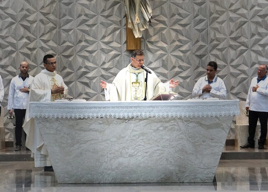 Em sua homilia, Dom Paulo reforçou a importância de amar-mos uns aos outros através da glorificação de Jesus: “Depois que Judas saiu do cenáculo, disse Jesus: Agora foi glorificado o Filho do Homem, e Deus foi glorificado nele. Se Deus foi glorificado nele, também Deus o glorificará em si mesmo, e o glorificará logo.”, disse o Bispo e acrescentou: “A gloria de Deus se manifesta na sua ação salvífica na história. A ação de Deus é a sua mão porque Deus é amor! E o amor ele deve ser externado. O amor não é egoísta! O amor à glória dele está em servir, em ser dom, em ir ao encontro. Aí está a glória do amor! E por isso a cruz é a maior gloria de Jesus! Ali ele nos salvou! Foi o momento em que ele mais serviu.” completou o Bispo.