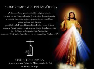 Acontece na noite desta quinta – feira (26), na Paróquia S. Sebastião na cidade de São Carlos, a missa de consagração e emissão dos compromissos provisórios junto à Comunidade Missionária Divina Misericórdia de São Carlos do Irmão Júnior e Irmã Renata.