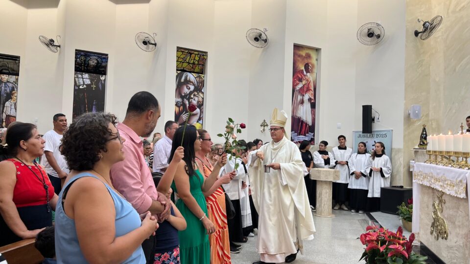Um dos momentos mais marcantes da celebração foi a homenagem dos fiéis, que prepararam um lindo jardim de rosas em honra à padroeira, símbolo de sua espiritualidade e entrega a Deus.