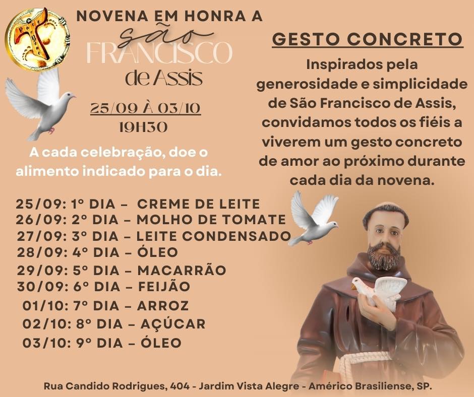 Confira a programação de novenas e tríduos das paróquias dedicadas ao santo em nossa diocese: