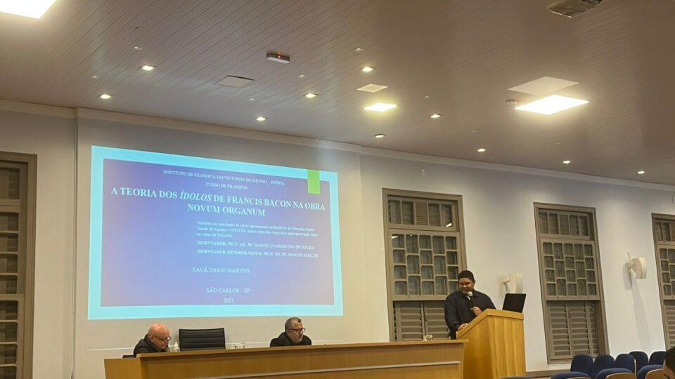 No segundo dia da Semana de Apresentação de Pesquisas (SAP) promovida pelo INFISTA, o aluno do 3º ano, Kauã Diogo Martins, apresentou o seu Trabalho de Conclusão de Curso (TCC), com a temática: A Teoria dos Ídolos de Francis Bacon na obra Novum Organum. Participaram da banca de avaliação o Prof. Me. Pe. Marcelo Aparecido de Souza (Orientador de conteúdo) e Prof. Dr. Pe. Marcio Coelho (Orientador de metodologia).