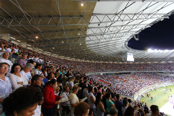 O Estádio do Mineirão em Belo Horizonte ficou repleto de fiéis neste domingo, 31, para a celebração da 15ª edição da “Torcida de Deus”. Segundo a Arquidiocese de Belo Horizonte, mais de 50 mil pessoas participaram do evento, que trouxe o tema da paz para o centro das atividades.