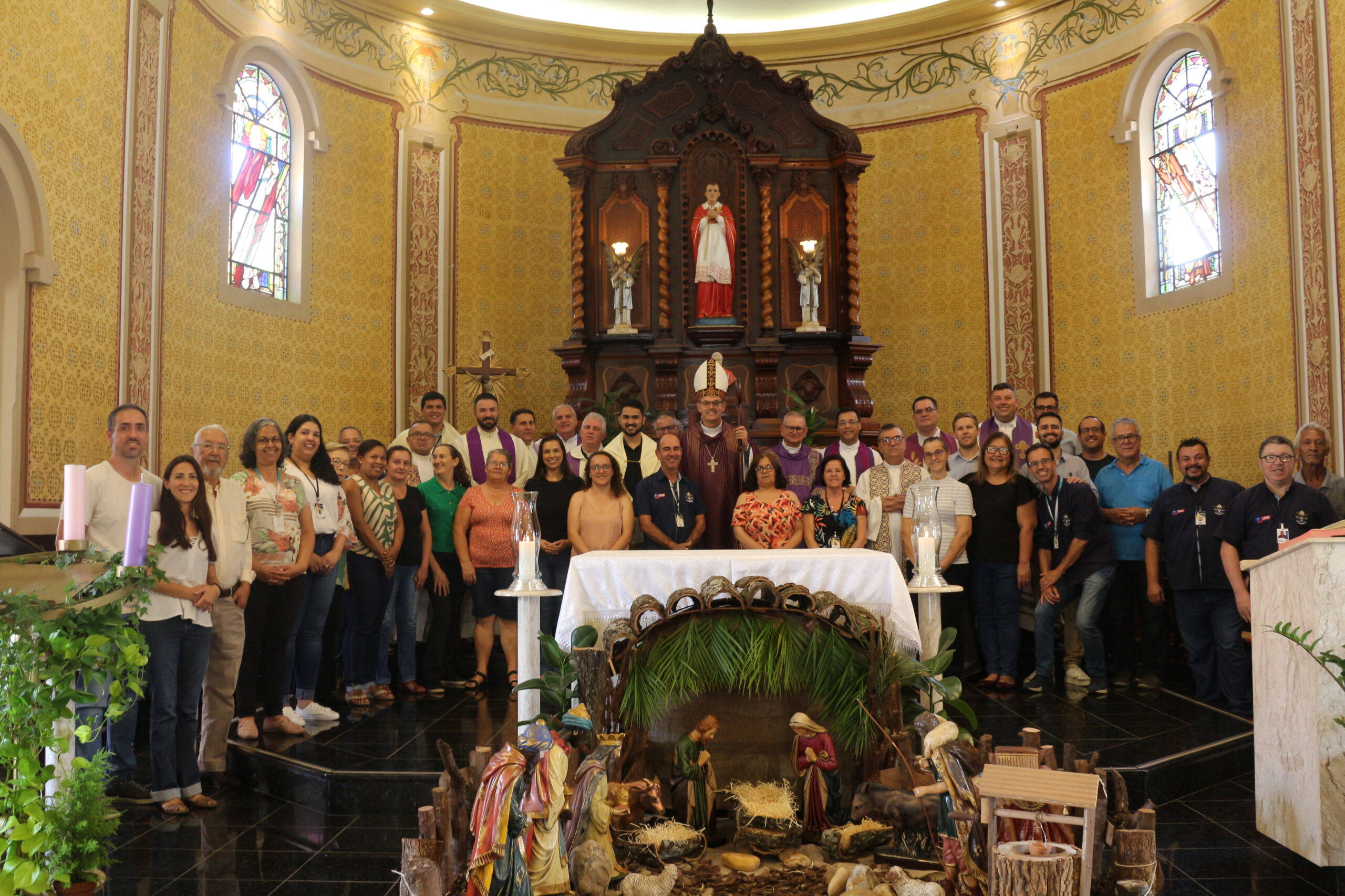 Aconteceu no dia de hoje, 19/12 a Santa Missa com todos os colaboradores da Cúria Diocesana, para render graças pelo ano de 2023. Dom Luiz Carlos Dias presidiu a mesmas juntamente com os Padres que ajudam à coordenar todo trabalho na Cúria Diocesana.