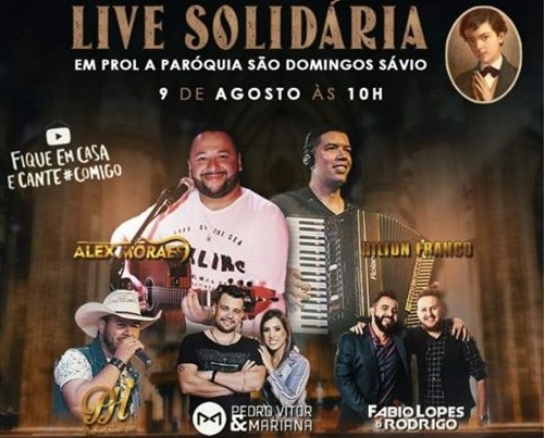 Vamos iniciar com a Santa Missa as 9h. A transmissão ocorrerá pela página da Paróquia São Domingos Sávio, o Facebook do Pe Ferdinando Magalhães assim como nas redes sociais dos artistas que farão o show.