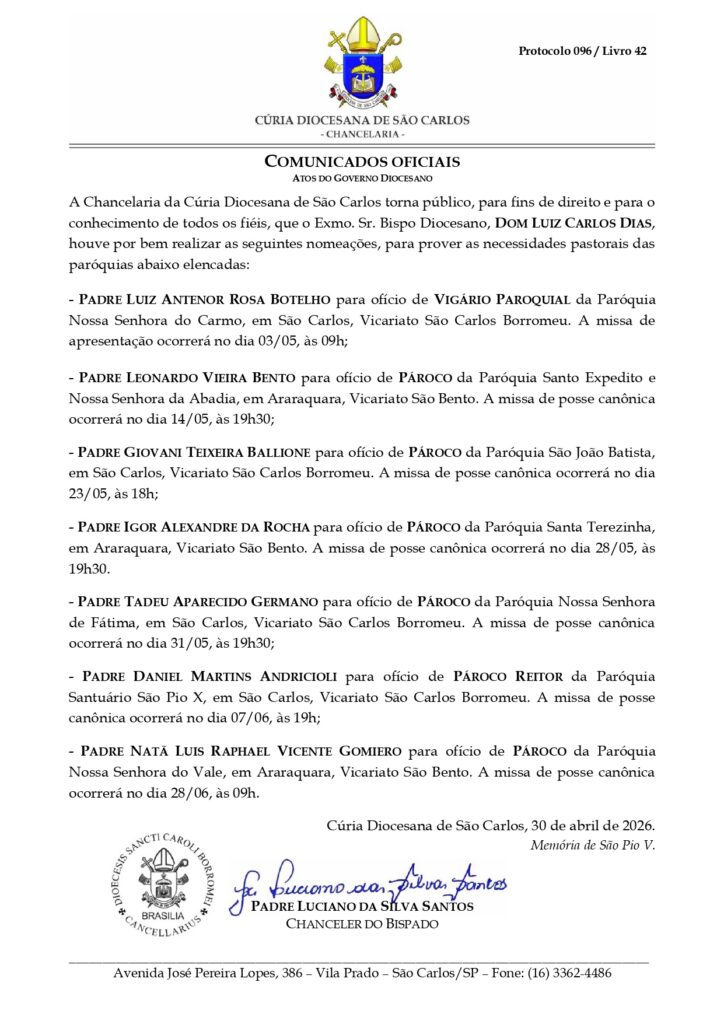 Nomeações e Transferências – Abril/2026