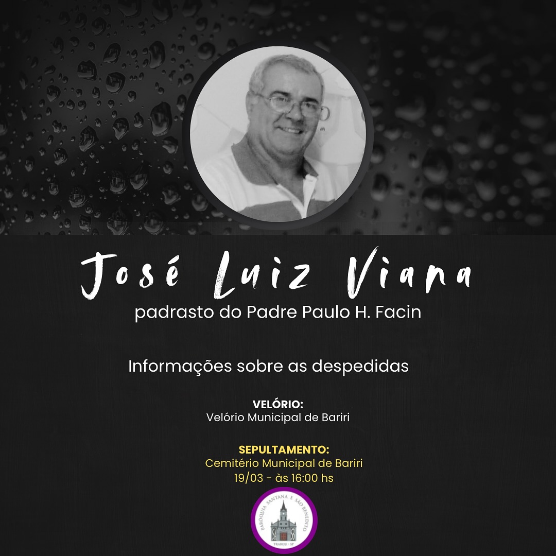 A Diocese de São Carlos comunica o falecimento do Sr. José Luiz Viana, padrasto do Padre Paulo Henrique Facin.