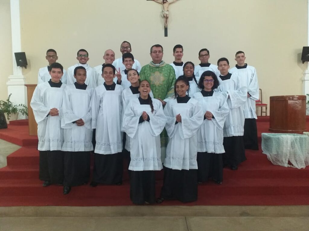 Ao todo, 14 adolescentes receberam as vestes para a função de acólitos. Padre Nilson, agradeceu o sim dos adolescentes e jovens: “Louvamos a Deus pelo sim desses jovens e rogamos que sejam perseverantes no ministério”.