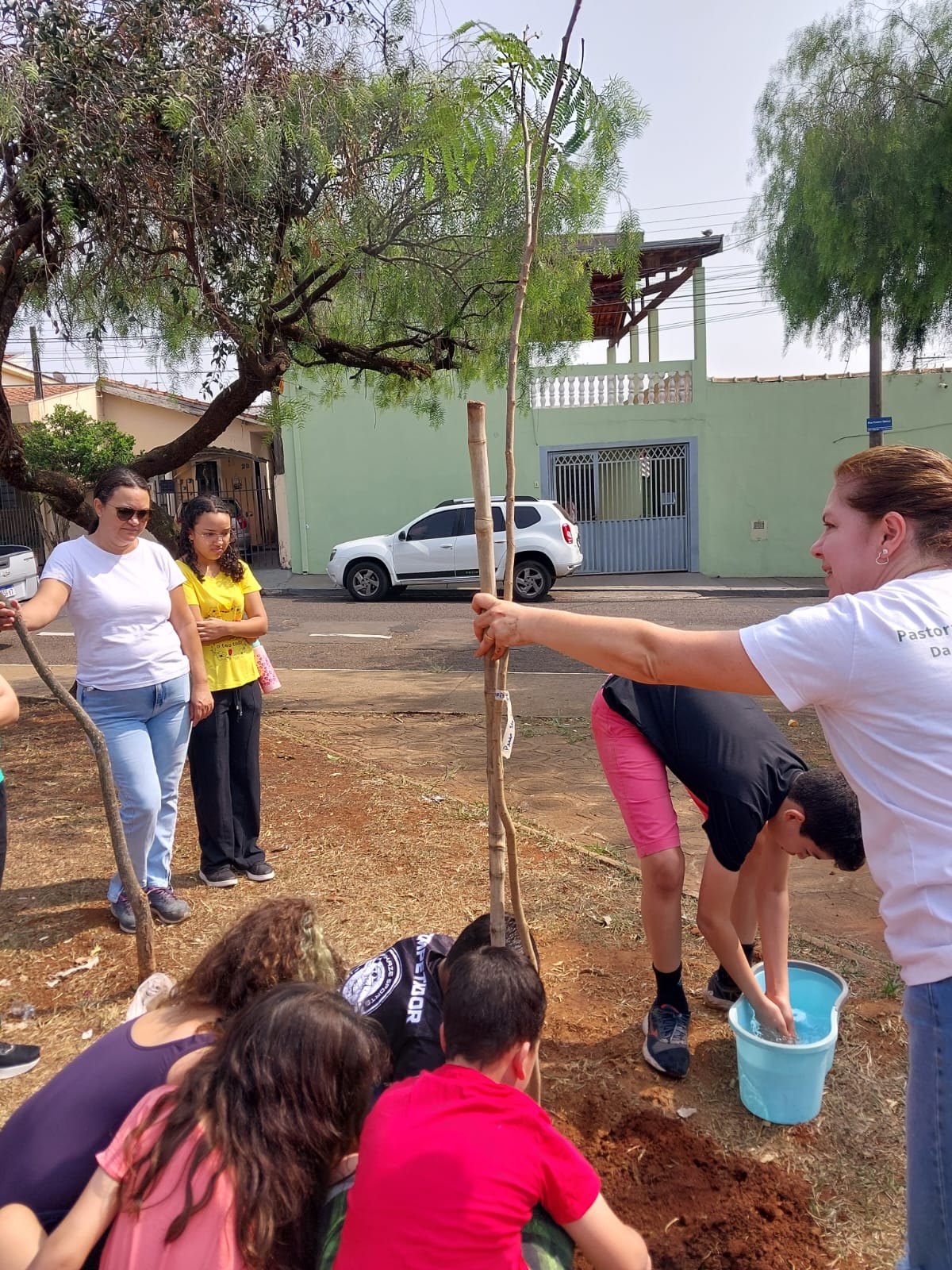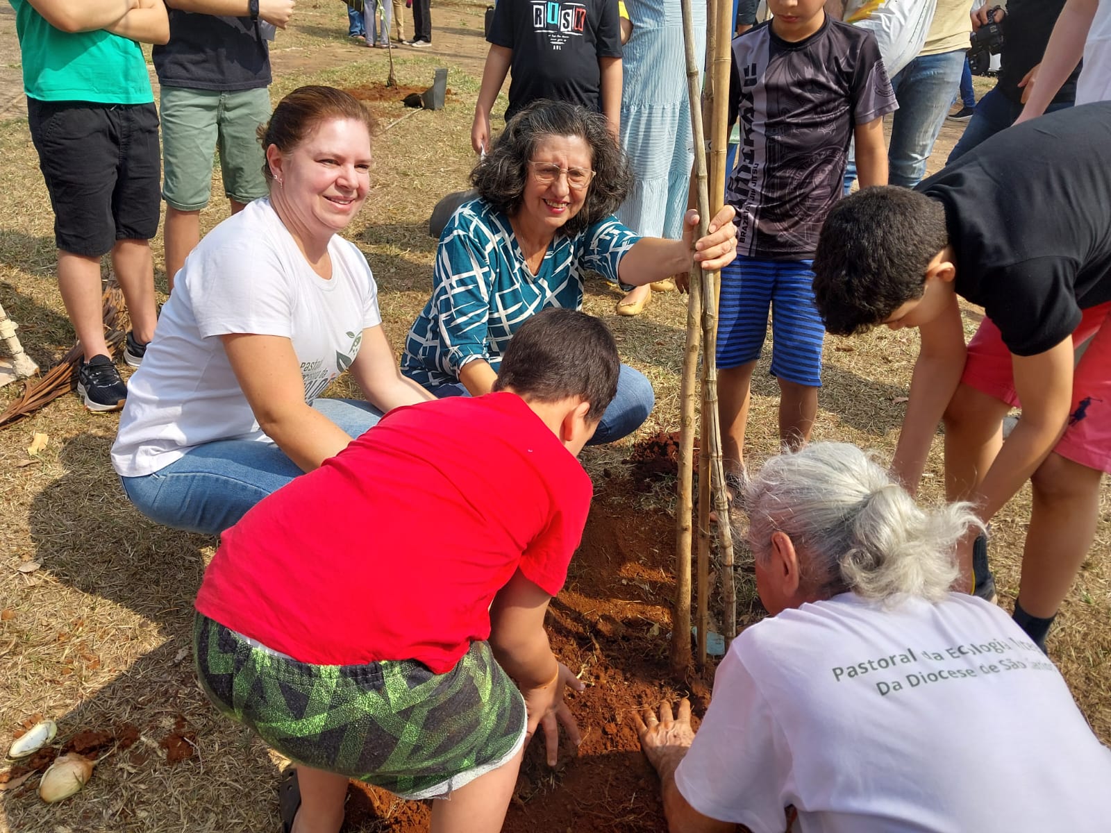 No domingo, 22 de setembro, a Pastoral da Ecologia da Diocese de São Carlos celebrou o Dia da Árvore e a chegada da Primavera. Foi um encontro especial entre a Pastoral da Ecologia Integral da Diocese de São Carlos, a comunidade da Paróquia Santa Luzia (incluindo crianças, catequistas, grupo de jovens, ministério de música e o pároco Pe. Júlio Perroni), estudantes do SENAI e moradores do entorno da praça.