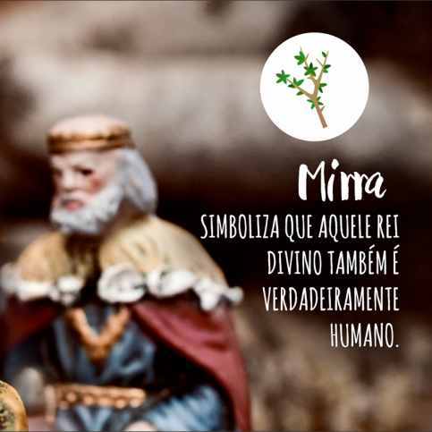 O presente da mirra simboliza que aquele Rei Divino também é verdadeiramente humano. Ele irá sentir a nossa dor e irá passar pela experiência da nossa morte. A mirra era usada para preparar os corpos para o sepultamento. Então, ao oferecer mirra ao menino Jesus, os magos enxergam em sua humanidade a grandeza do amor de Deus, que assumiu viver na nossa carne.