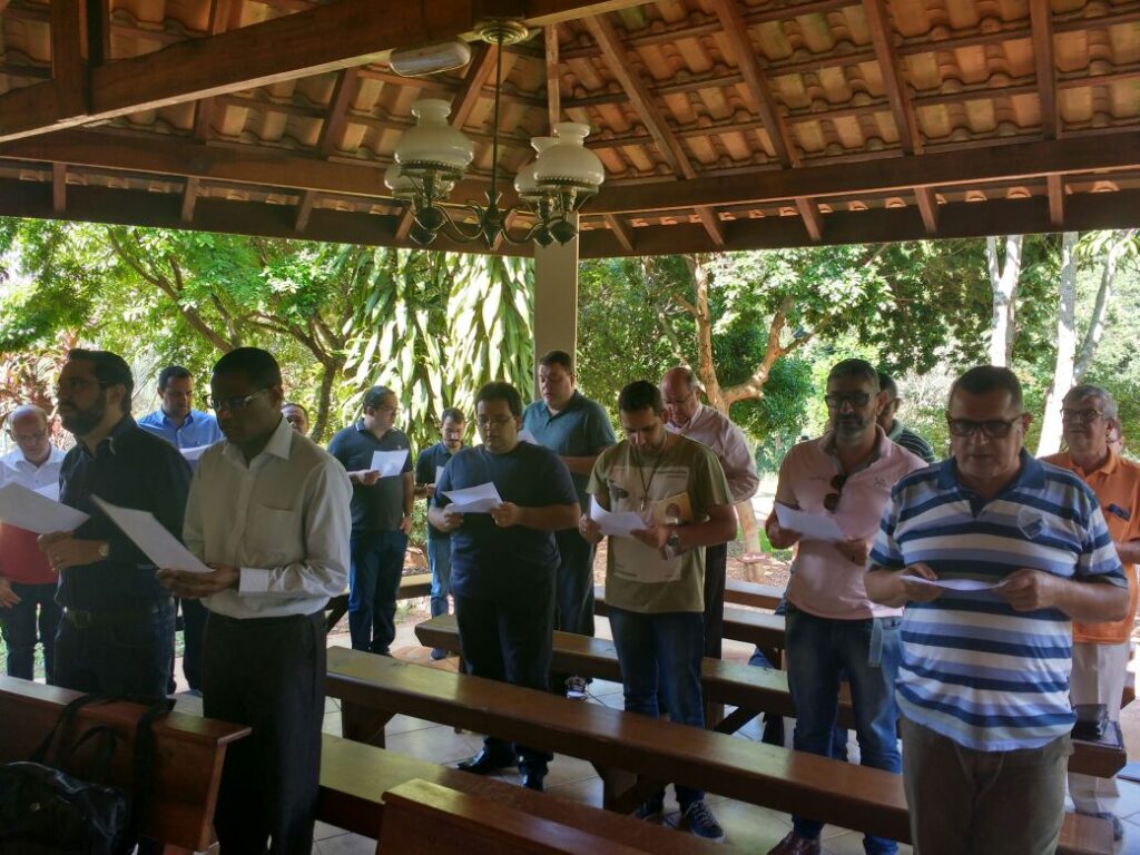 A reunião se iniciou com um delicioso café da manhã nas dependências do hotel. Em seguida, deu-se início à oração sob a direção do Padre Daniel, na Capela São José da Areia que Canta.