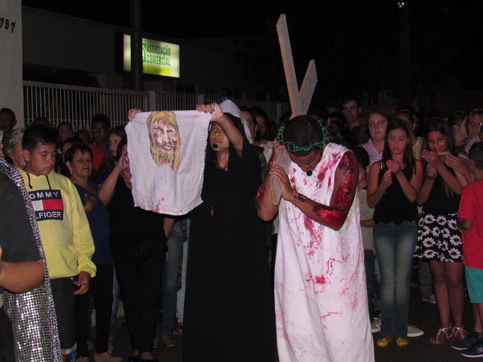 A noite, mais um ato de fé e devoção a Nosso Senhor Jesus Cristo. Saindo da Igreja de N.S Aparecida, a procissão luminosa com os andores do Senhor Morto e Nossa Senhora das Dores, junto a procissão, o grupo de jovens JuvenCris, encenou a via sacra pelas ruas da cidade, até a Igreja Matriz de São João Batista. Centenas de fiéis acompanhado e meditando os últimos passos de Jesus antes de sua crucificação.